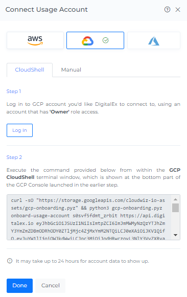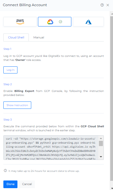 Now, you will be able to automatically onboard the GCP Billing & Usage account with a few steps by using GCP CloudShell.
