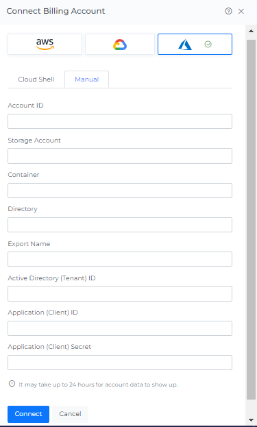 Billing Account: You can onboard a billing account individually if you already have an account onboarded.