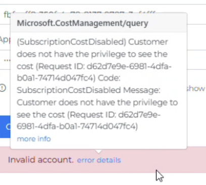 Error: SubscriptionCostDisabled (Customer does not have the privilege to see the cost)