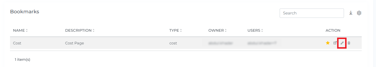4. To edit a bookmark, click on the edit icon for that bookmark (which will open the update bookmarks page)