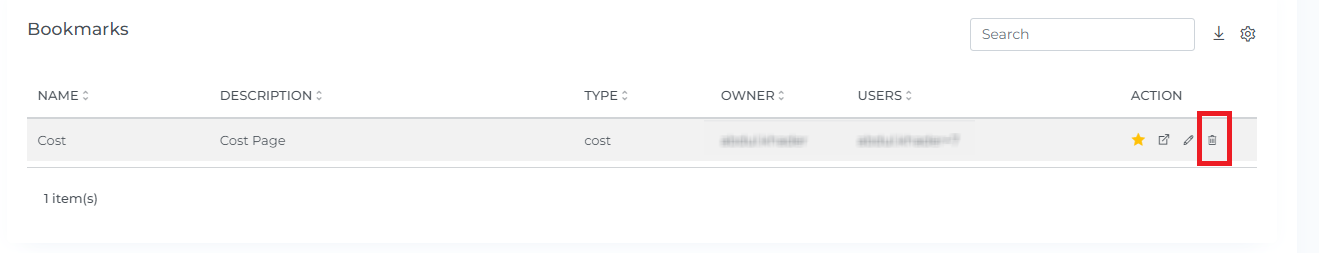 4. Click on the delete icon of the bookmarks which you want to Delete.