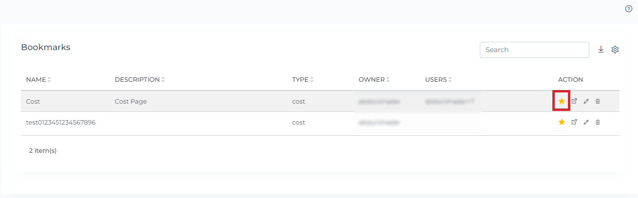 Click on the module for which you want to bookmark (e.g;-Cost)