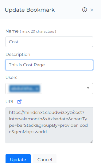 If you want to create bookmarks without customizing the dashboard and filtering the cost chart, you can follow below steps