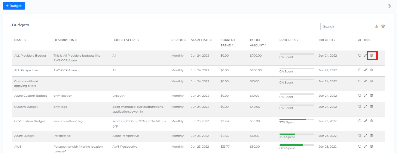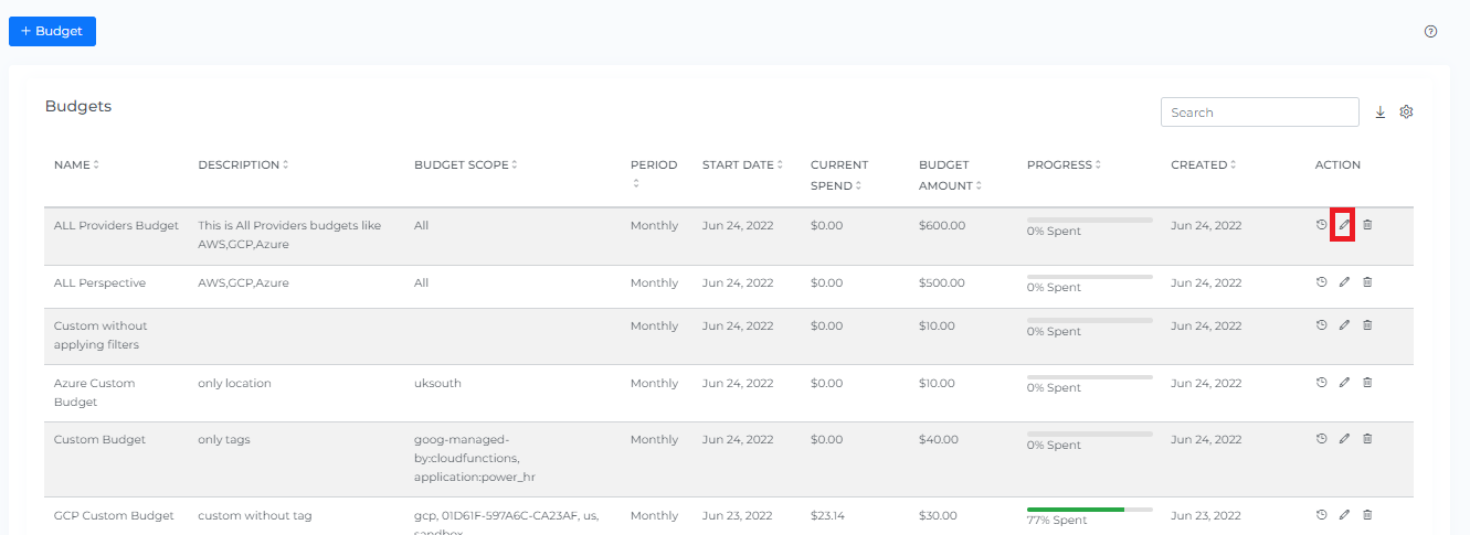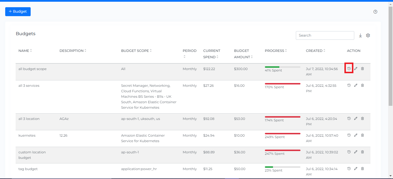 Note: Budget history begins on the budget creation date and up to 12 months of history will be displayed