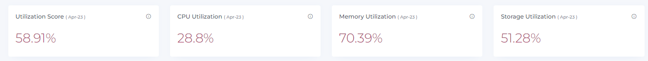 The utilization score widget shows the percentage of Total Datacenter utilization score for the selected datacenter. This allows you to see the extent to which you are using your datacenter and how much of your datacenter commitment has been fulfilled. This can help you understand the effectiveness of your datacenter usage and identify any opportunities for optimization.