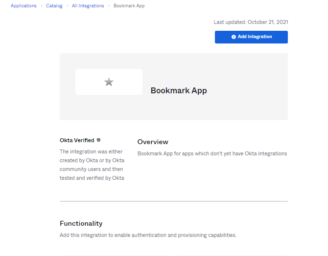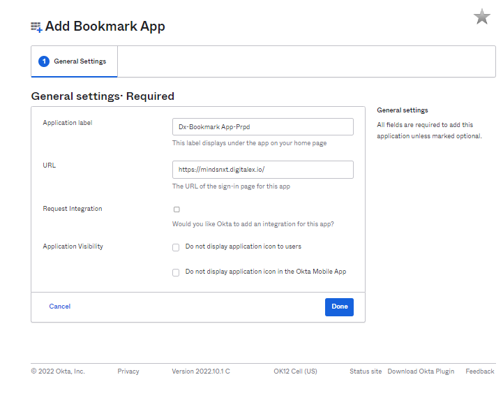 Step 2: Create Bookmark App in Okta