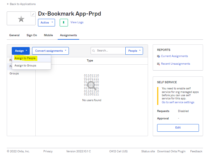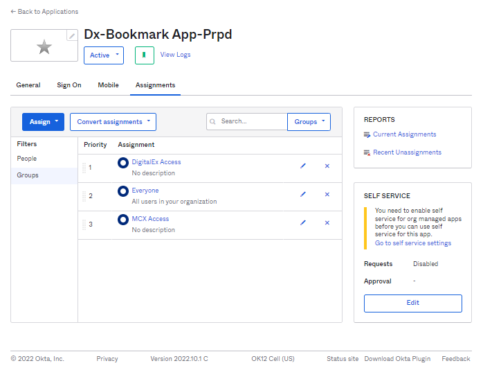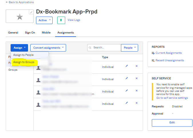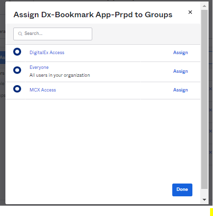 12. Click Assign for which group of users you want to give access to this application.