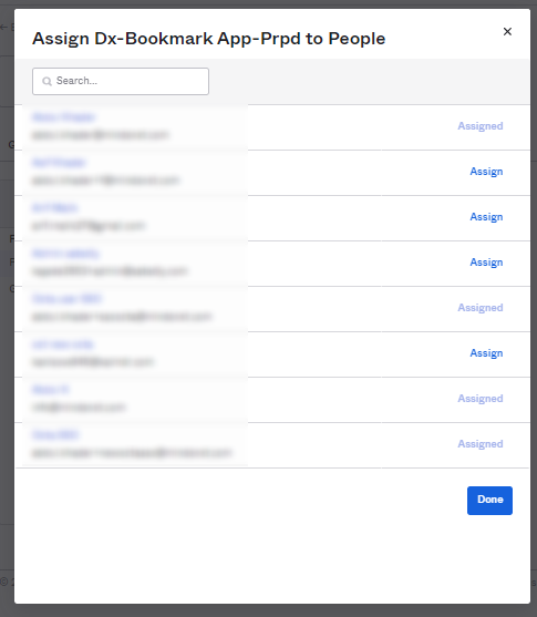 9. Click on Done. Users are assigned successfully to an Application as shown below