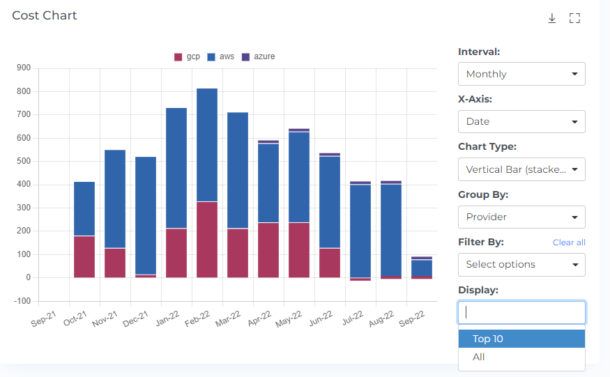 You can view the Top 10 & All Data from Cost Chart under Display Dropdown. Learn More Cost