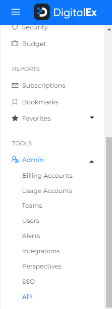 14. Go to Menu & open API page