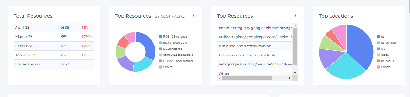Please note that resource percentage increases and decreases are not displayed for the first month of onboarding. This is because there is no previous month's data to compare against. Data for the total resources widget will only be displayed from the month in which the usage account was onboarded.