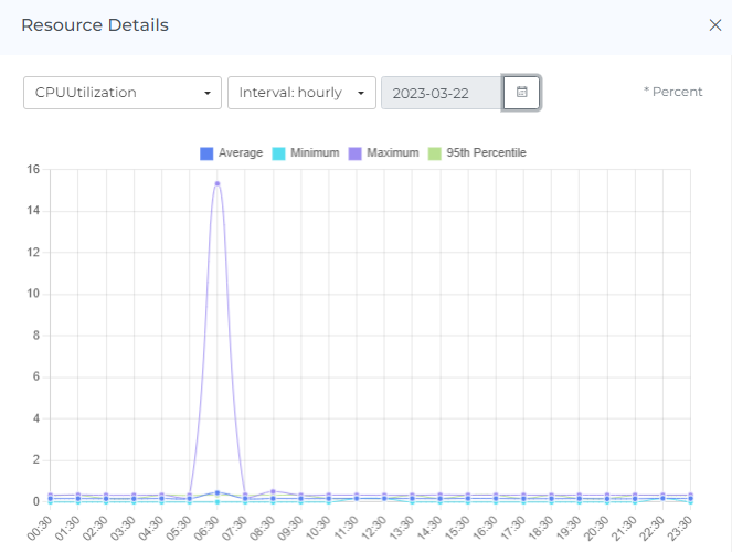If the hourly interval is selected for the monitoring graphs, users can set a specific date to see the hourly metrics data for that date. This allows them to see how the resource was used on an hourly basis on a specific day. Hourly metrics data can be useful for understanding how a resource was used over the course of a day and for identifying patterns in resource usage. It can also help users identify any potential issues or opportunities for optimization.