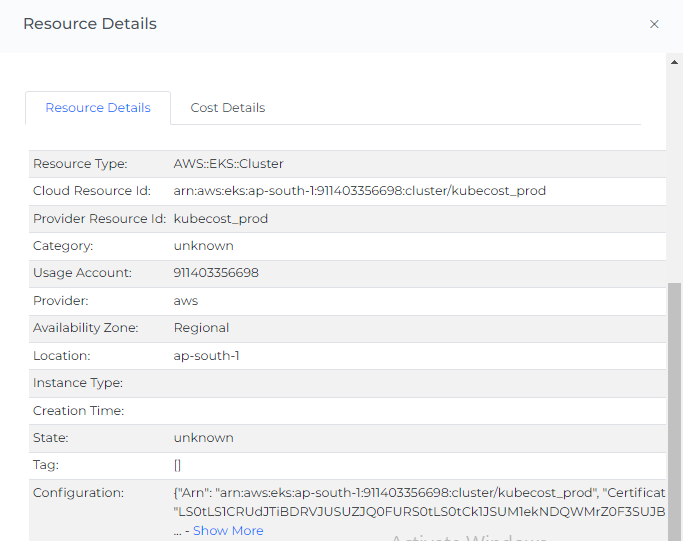 You can filter the complete page using this option. For Example, if you want to view the Resources of AWS, select the AWS provider filter, or you can view the Resources of a particular Billing Account, Usage Account, Location, Resource Type, Tags