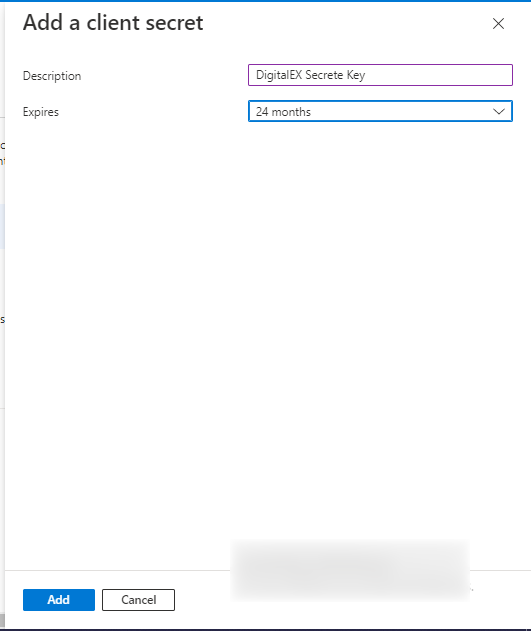 6. Applied client secret will be displayed as shown below