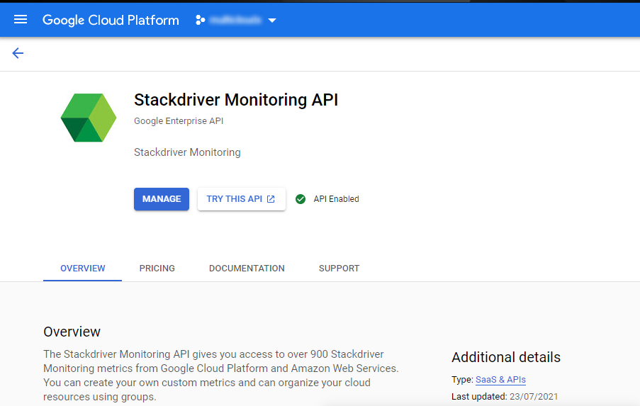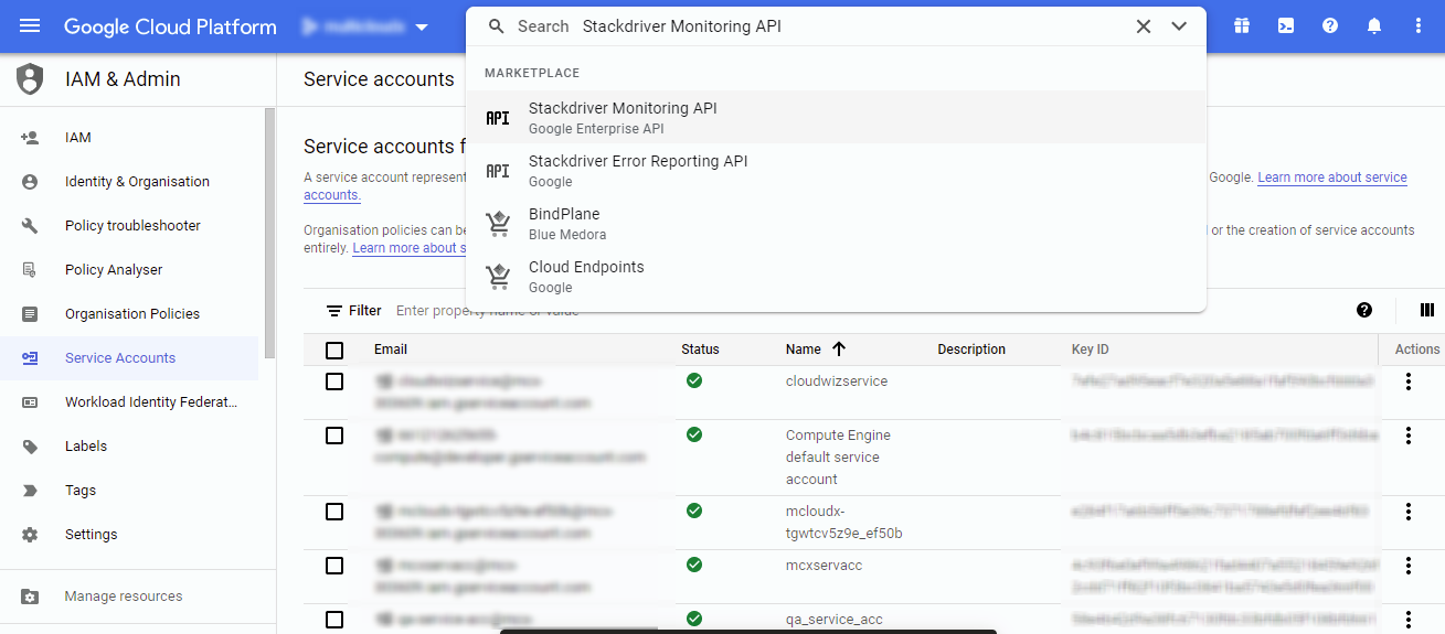 Enter Stackdriver Monitoring API in the Search bar and Select.