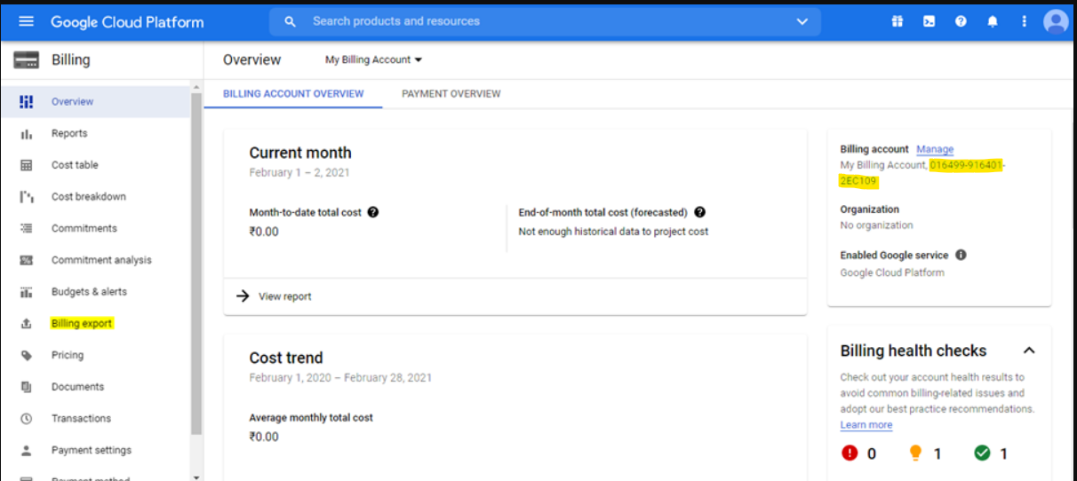 Click on Overview and capture Billing Account id which is required in subsequent steps