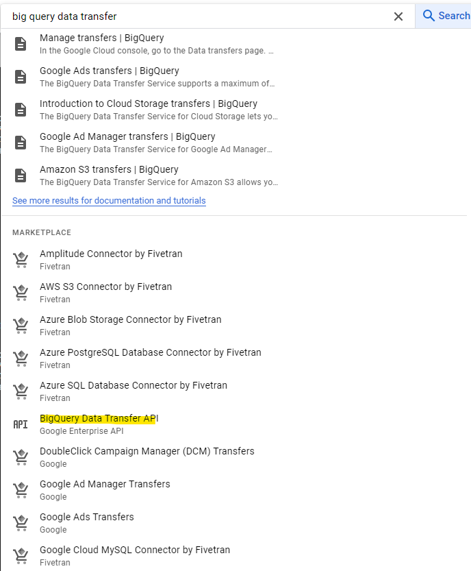 Enable the BigQuery Data Transfer Service API.