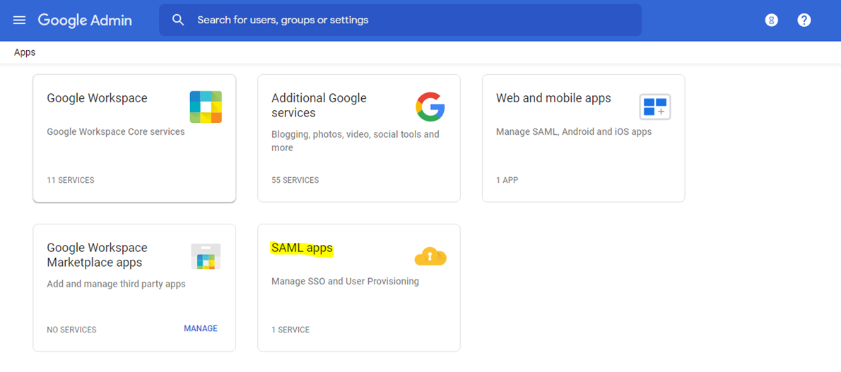 Click on SAML Apps