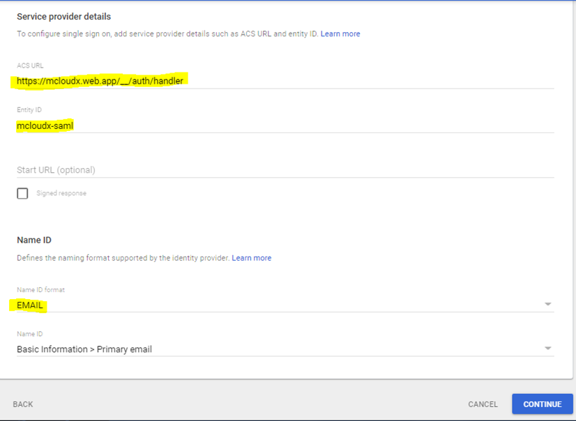 Select EMAIL as Name Id Format.