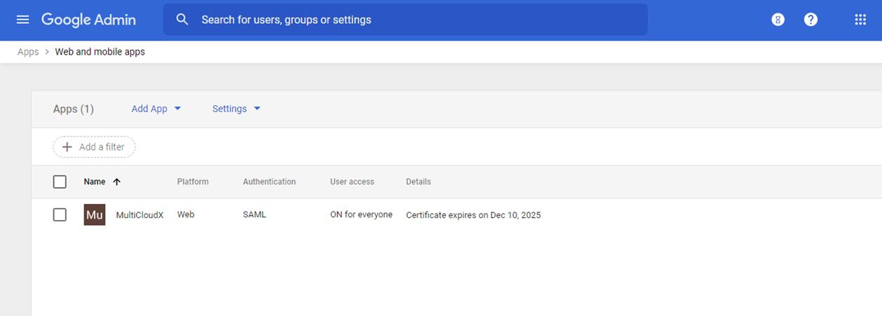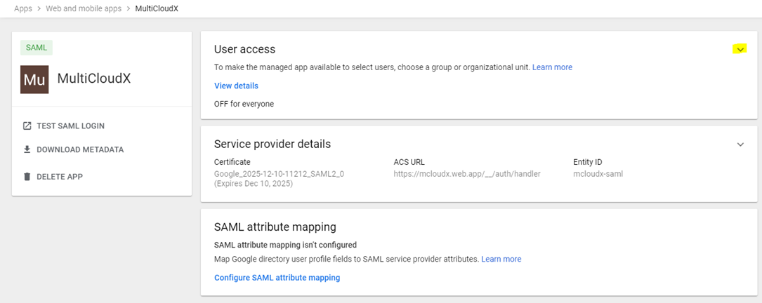 SAML App is created successfully and it’s displayed as shown below