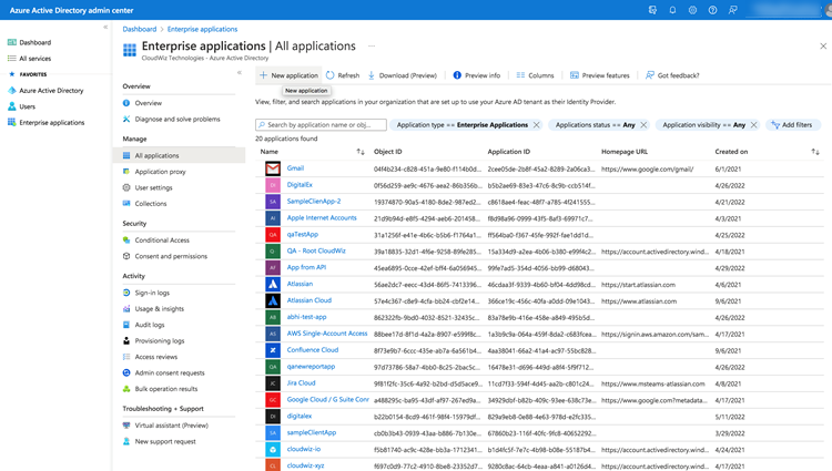 4. From Enterprise applications click on “New application” as shown below.