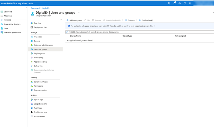 7. Add the users or groups. We recommend adding a group to avoid having to add individual users as you onboard new employees.