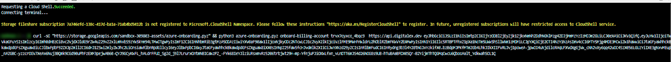 Copy the script and Execute the command provided below from within the Azure CloudShell terminal window, which is shown at the bottom part of the Azure Console launched in the earlier step.