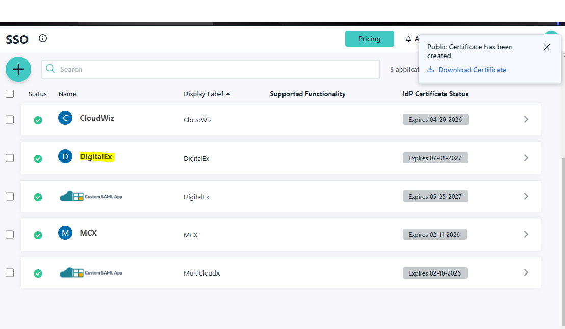 Click on SSO from left side panel