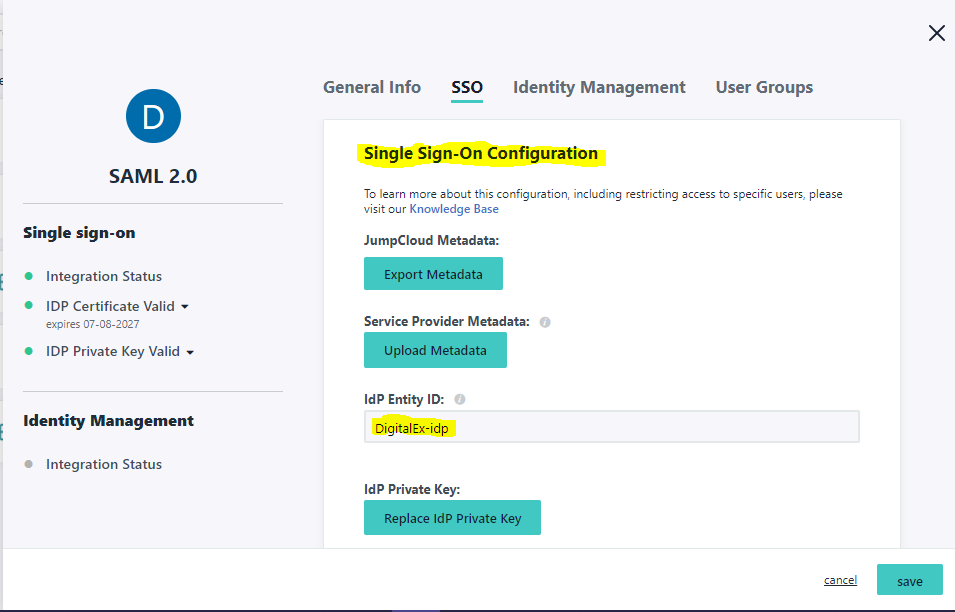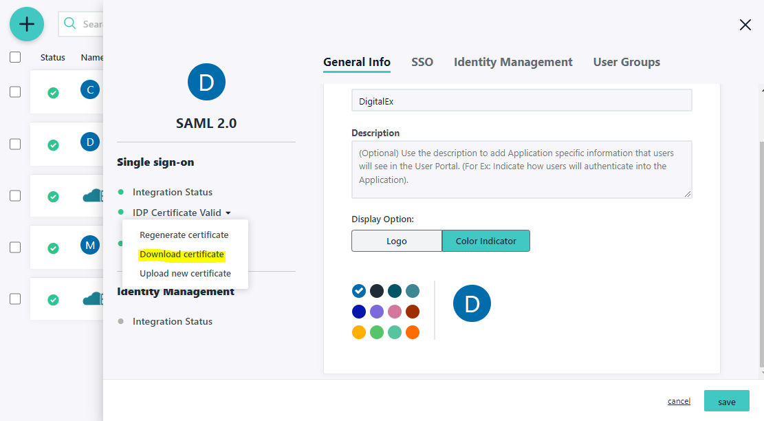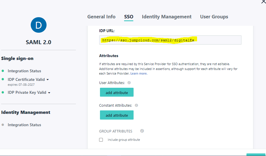 3. Click IDP certificate valid and Click Download certificate. This is used in step-1