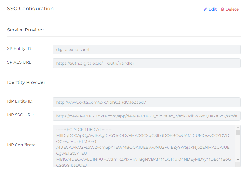 8. SSO is configured successfully, you can Edit or Delete the existing data if required.