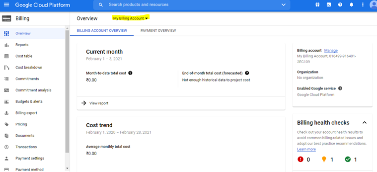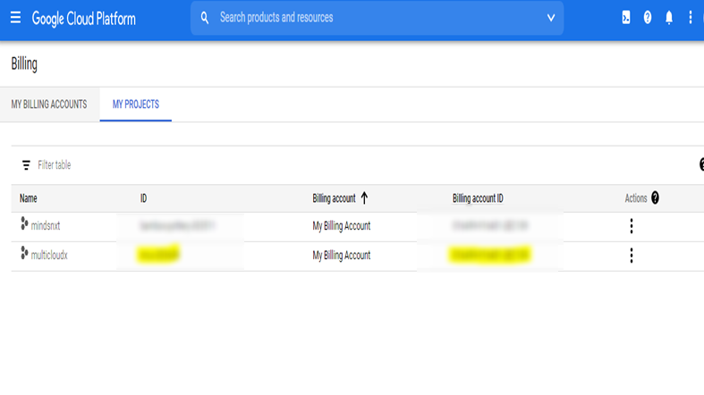 Click on My Projects. Make a note of Project Id and Billing Account Id