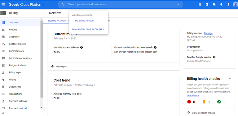 Step-5 : Retrieve Billing Account Id and Project Id.