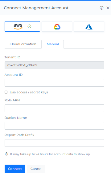After adding a new account, it may take up to 30 minutes for the system to discover and process the data.