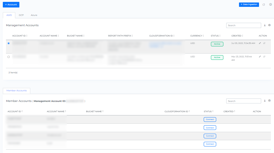 The onboarded Management Account will be displayed with the list of All linked Member accounts.
