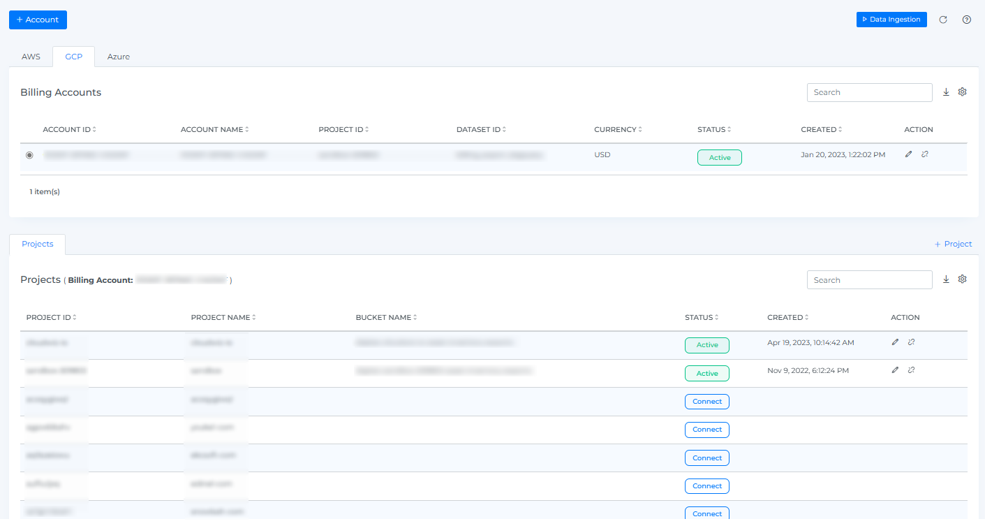 The onboarded Billing Account will be displayed with the list of all linked Projects.
