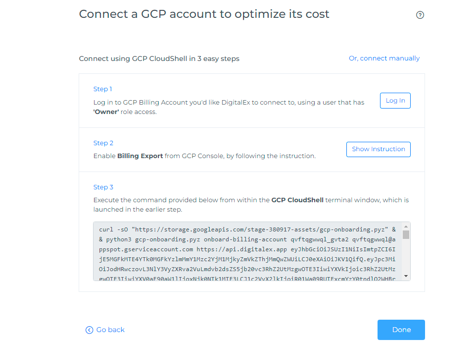 2. Select the GCP provider & Click on Manual tab