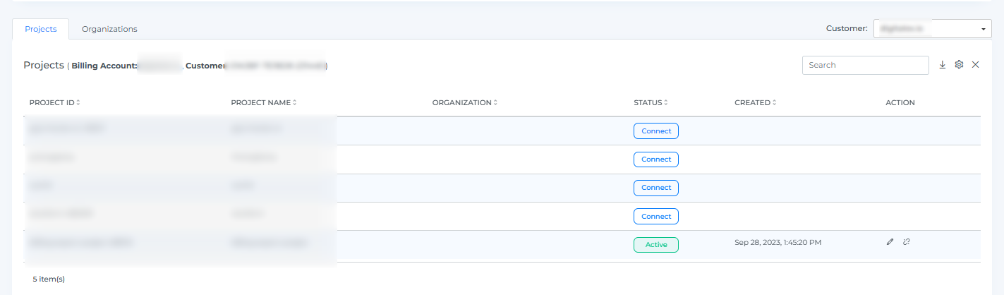 On-boarded projects will be displayed on the list of projects. It takes up to 30 minutes to discover the data