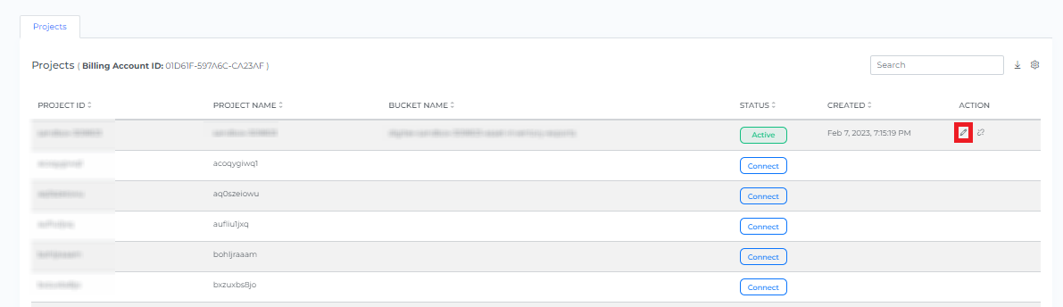 5. Click on the Edit button which projects you want to update
